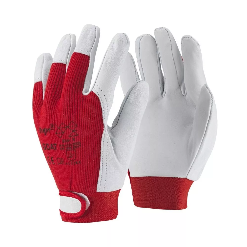 A TOP GOAT védőkesztyű strapabíró, természetes kecskebőr tenyérrel készül, amely magas kopásállóságot és tartósságot biztosít. A pamut, szellőző kézhát hozzájárul a kéz komfortjához, így hosszabb munkavégzés során is kellemes viseletet nyújt.