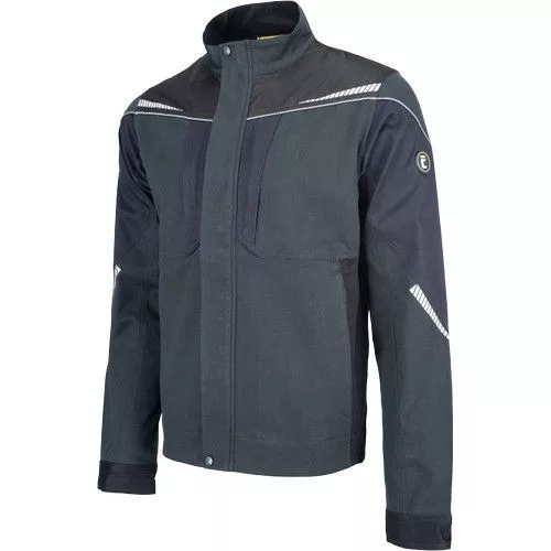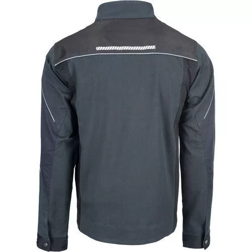 • men's working jacket with zip fastening • made of stretch fabric • 2 side pockets, 2 zipped chest pockets • reinforcement of the stressed parts • reflective piping and printed details