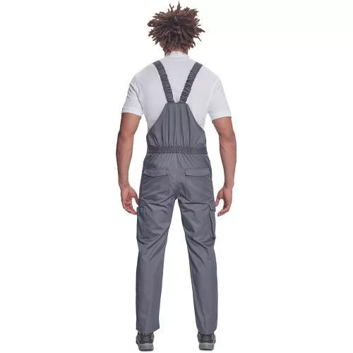 • férfi mellesnadrág • rugalmas betét a derékrészen • 2 első zseb + 1 érmezseb • 2 oldalzseb • 1 multifunkcionális mellzseb • rugalmas pántok műanyag csatokkal • leengedhető szárak • 195 g/m2