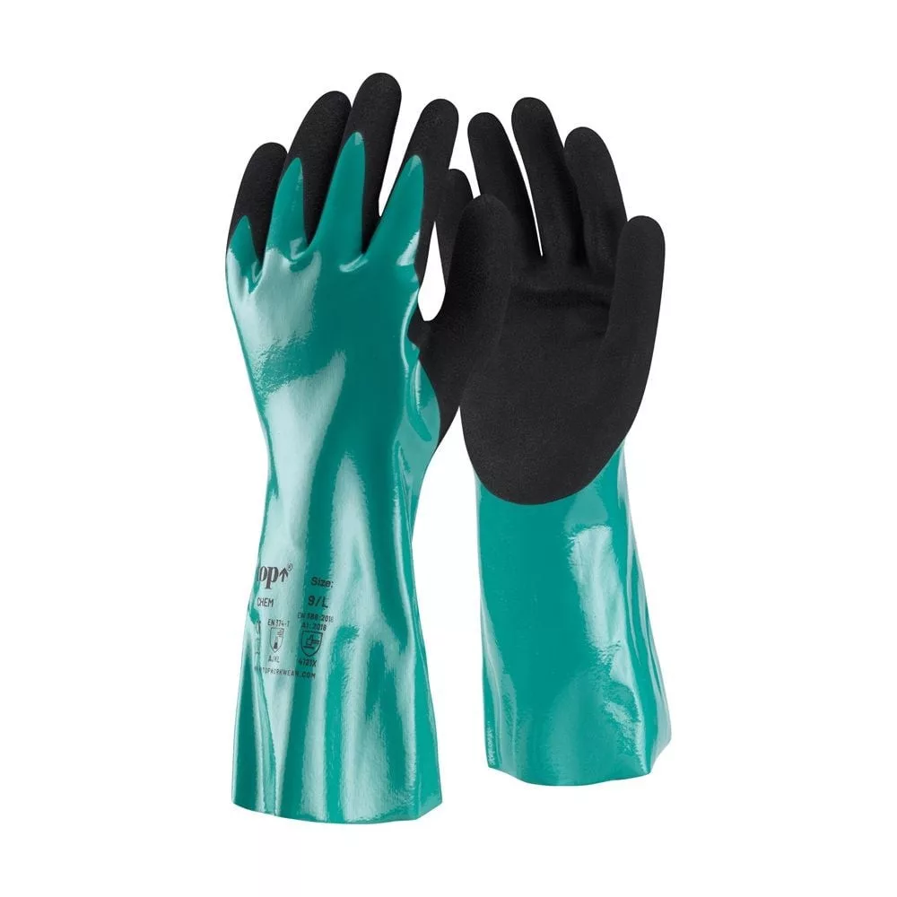 TOP CHEM védőkesztyű – prémium kétrétegű nitril védelem ipari kihívásokra