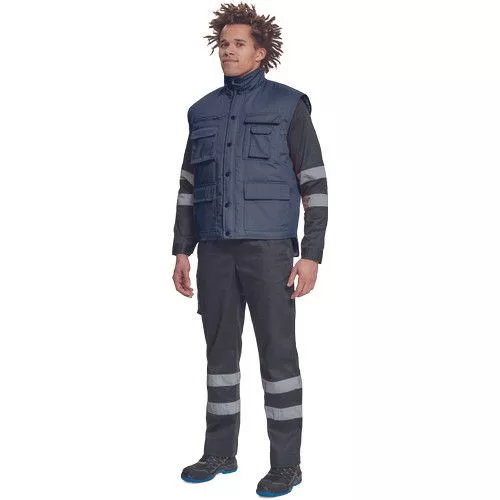 • bélelt mellény állógallérral • hosszított hátrész • műanyag patentokkal