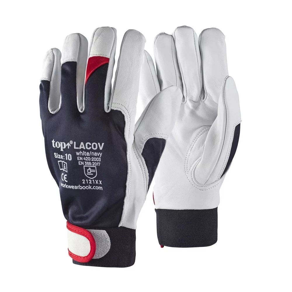 Védőkesztyű báránybőr pamut kézhát top lacov, sötétkék/fehér/piros