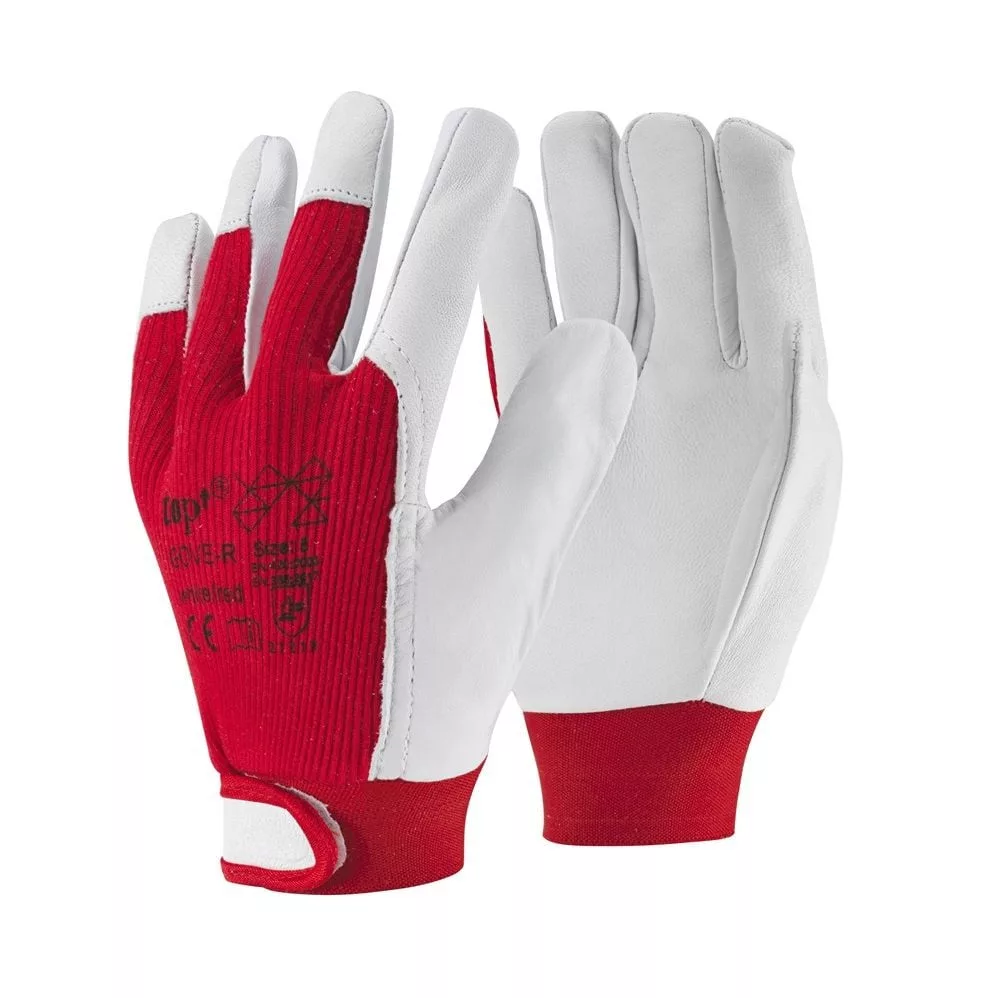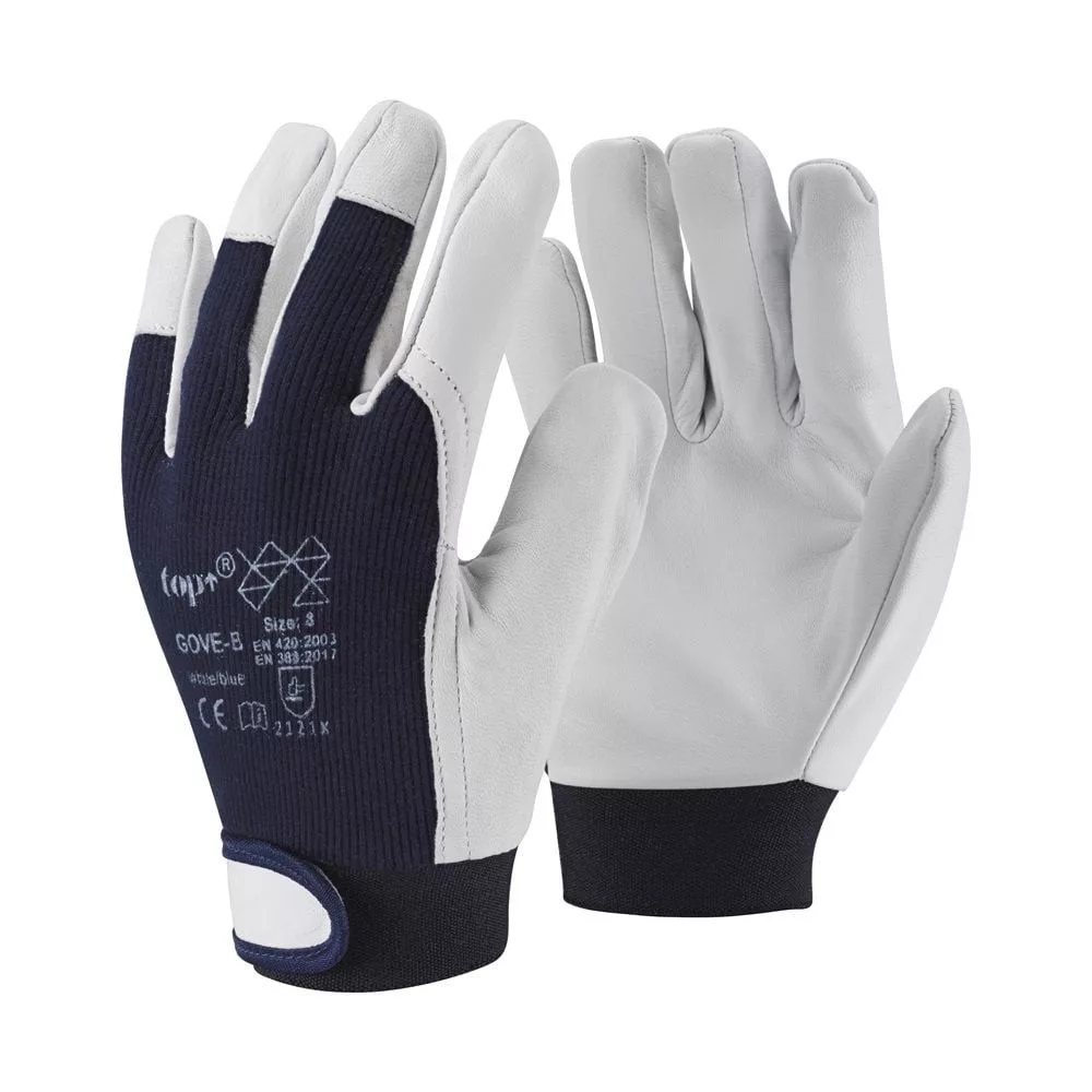 A TOP GOVE védőkesztyű a puha, természetes báránybőr tenyérrésszel és pamut, jól szellőző kézháttal készült, amely komfortos viseletet biztosít még hosszabb munkanapokon is. Az ujjperceknél található bőrborítás extra védelmet nyújt a mechanikai igénybevétellel szemben, miközben megtartja a kesztyű rugalmasságát és kézmozgás szabadságát.