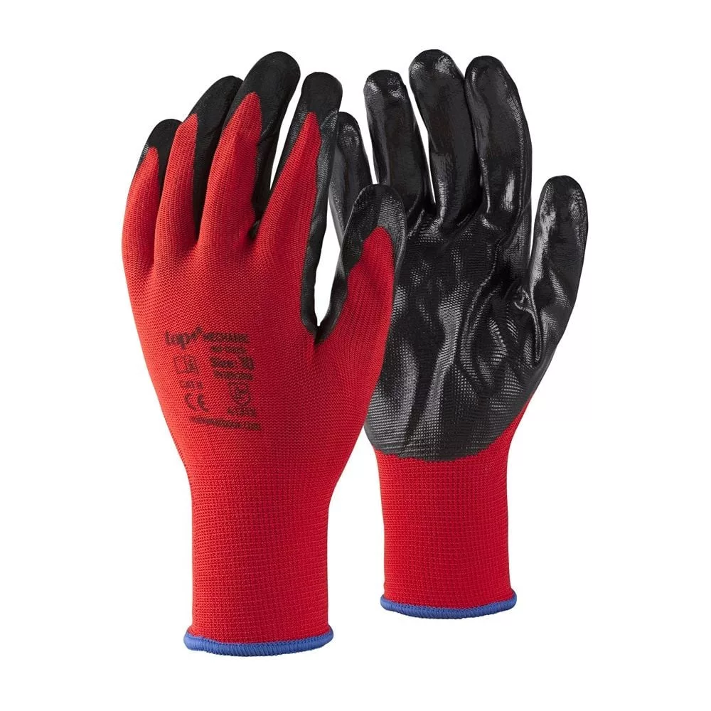 Védőkesztyű mechanic nitril red poliészter mártással top, piros/fekete